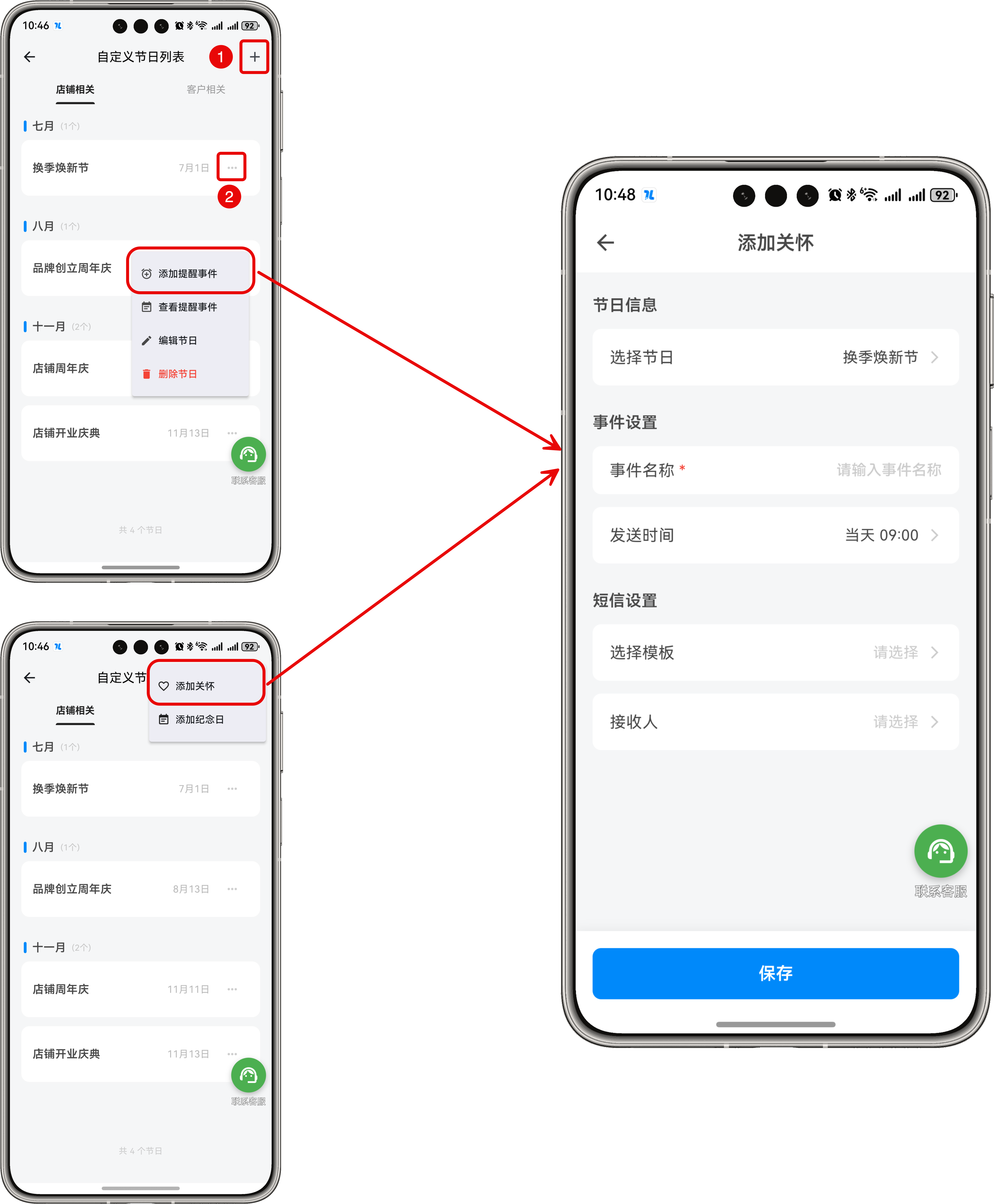 - 事件名称:为提醒事件取一个名称,如“员工元旦祝福”,“店庆到店提醒”等;