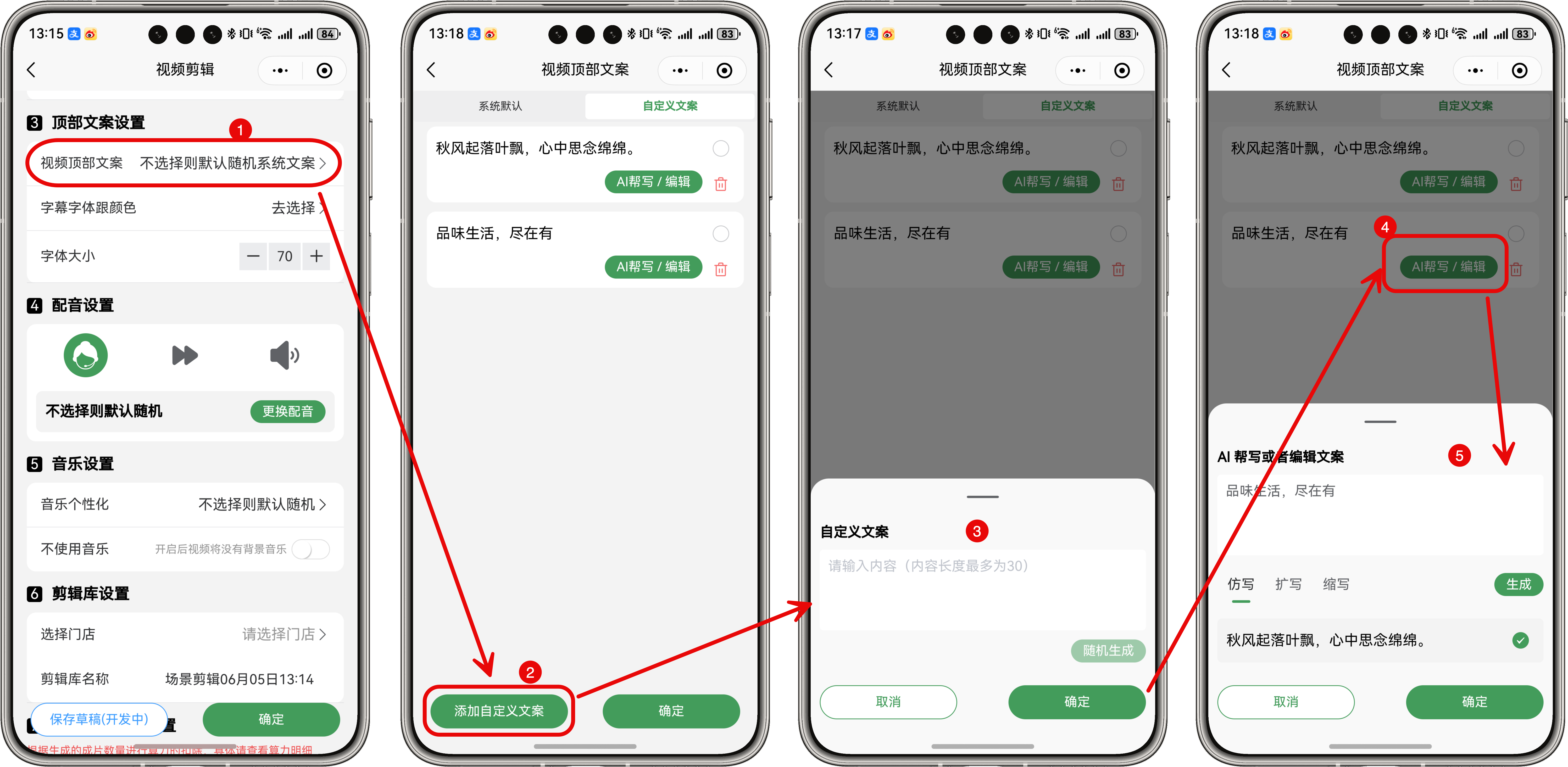 - 添加自定义文案时输入关键词直接确定即可,不需要点随机生成。