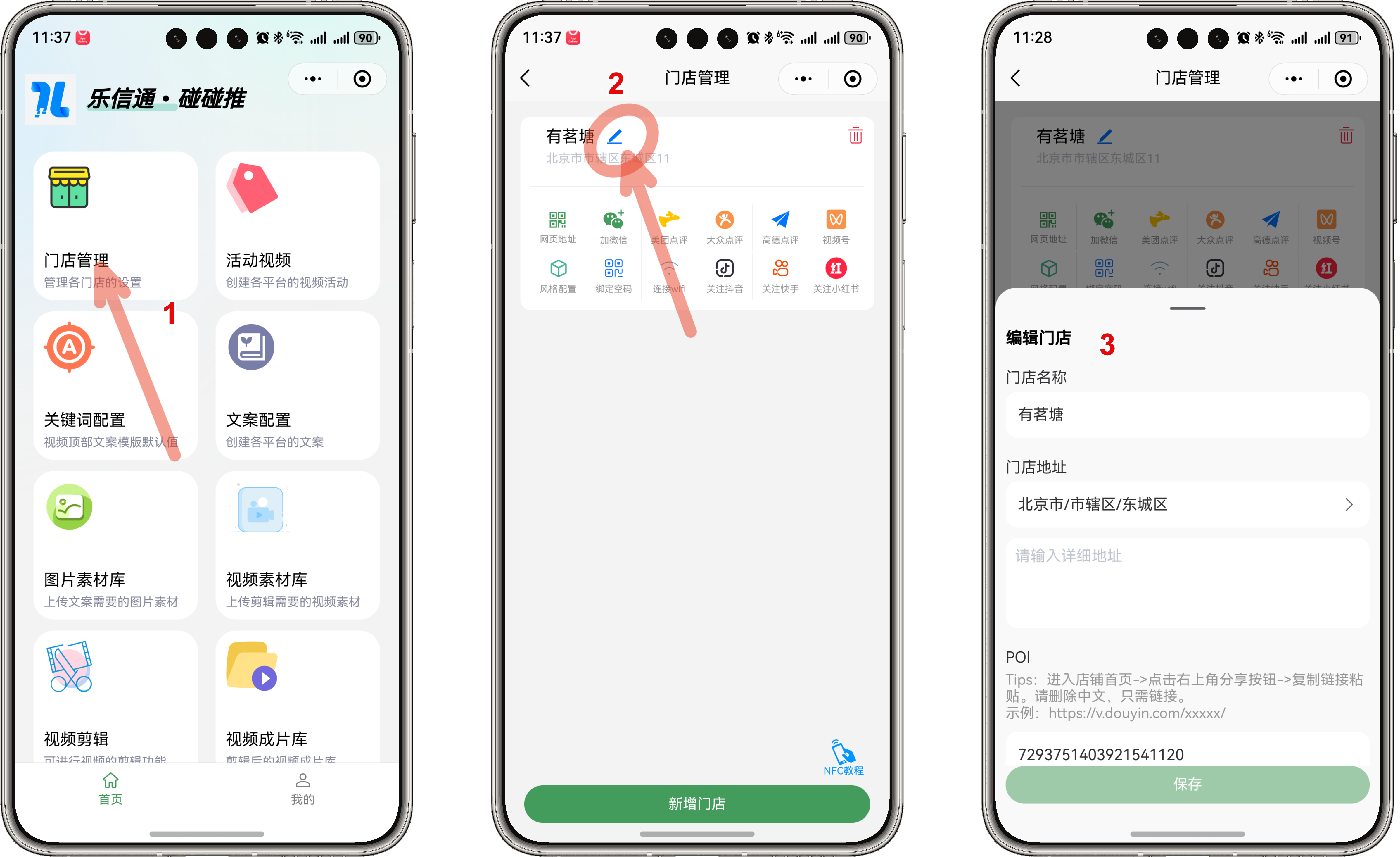 重要当填入 POI 后,您的客户/顾客通过碰碰推分享的视频会带有您店铺/企业的 POI 地址,会将您的 POI 地址打热, POI 地址一旦打热之后就会自带流量算法,会自动持续推送视频给附近用户,形成二次曝光,本质上挂载 POI 的人数够多,行程的曝光就更多,用户也会重复刷到,会让您的店铺/企业有大量的曝光。