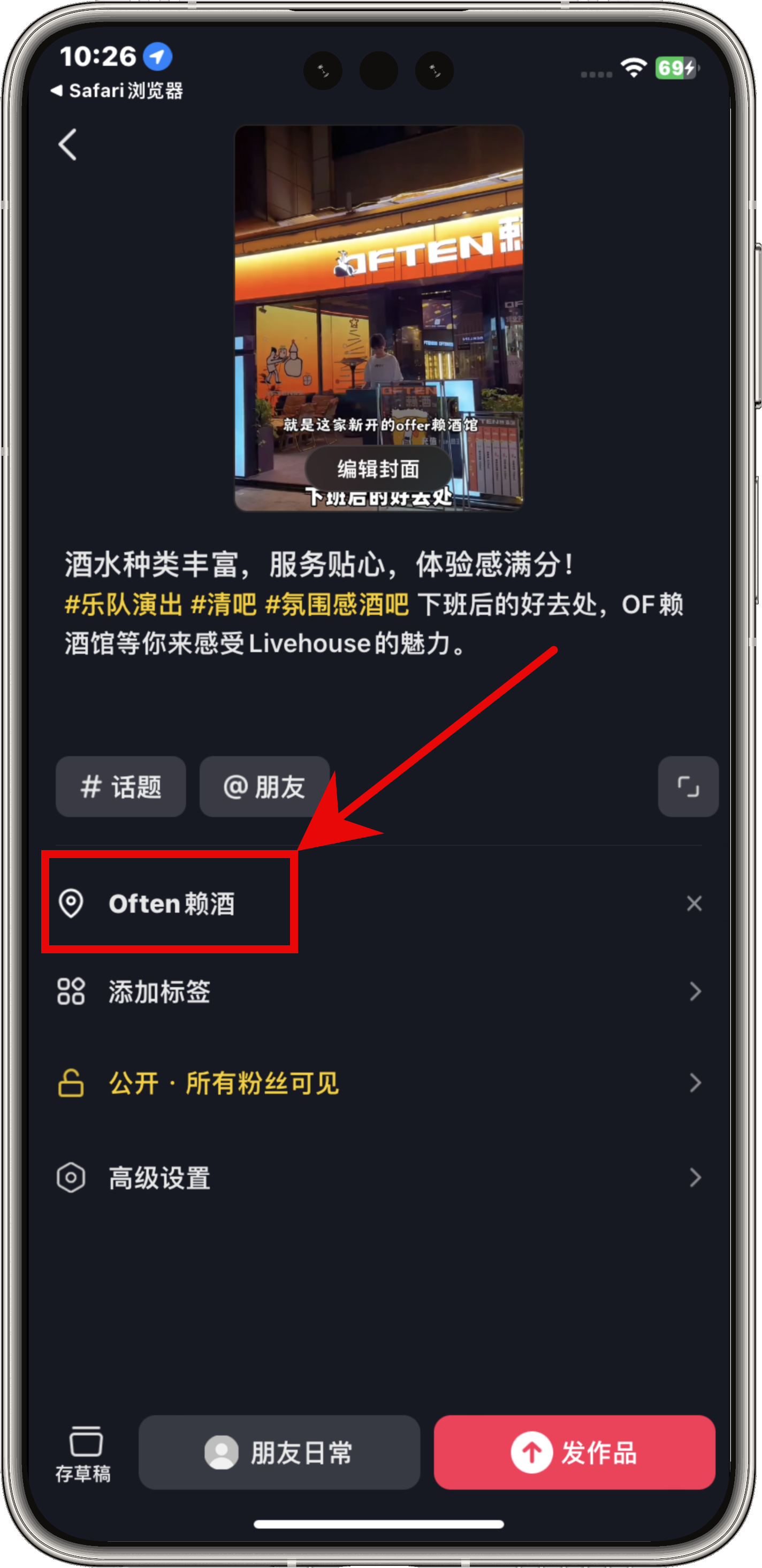 带 POI 地址发布视频的效果如下图: